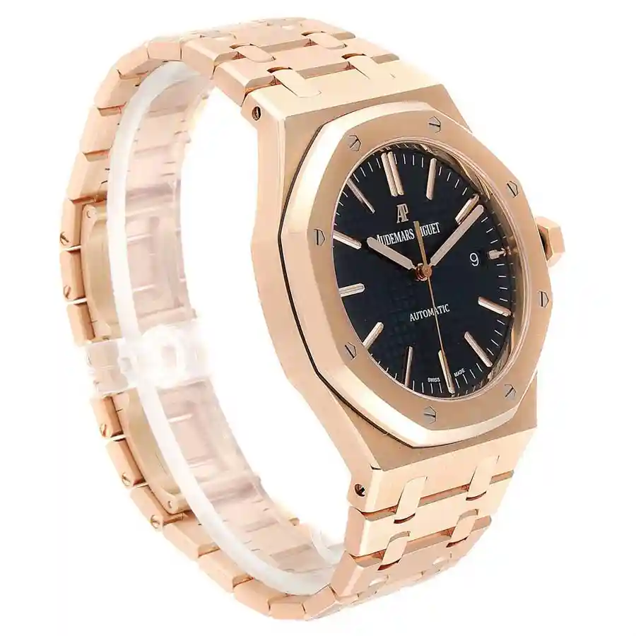 AP 15500 Rose Gold  replica has a 904L stainless steel Royal Oak bracelet. The bracelet in rose gold color has an AP folding clasp.