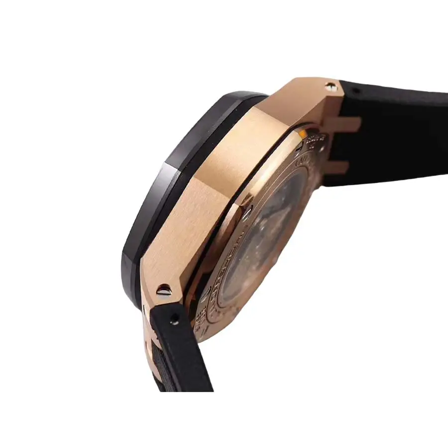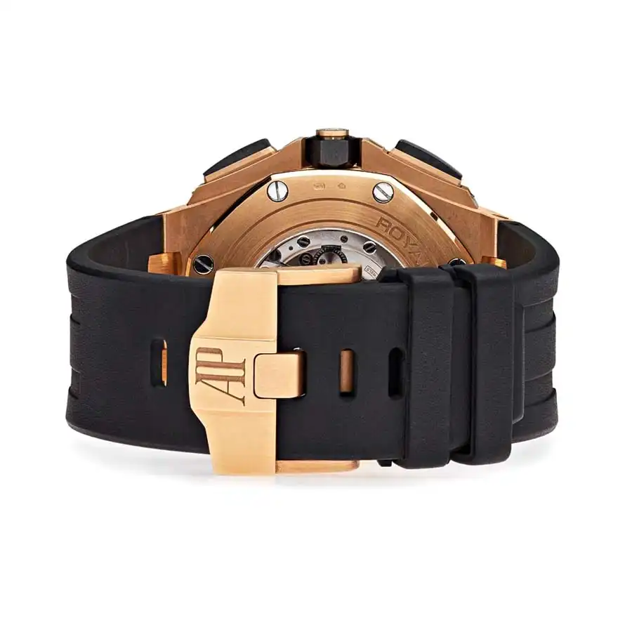 AP Pride of Germany replica has a rubber bracelet. The bracelet has an adjustable link and a 904L stainless steel rose gold colored AP pin buckle.
