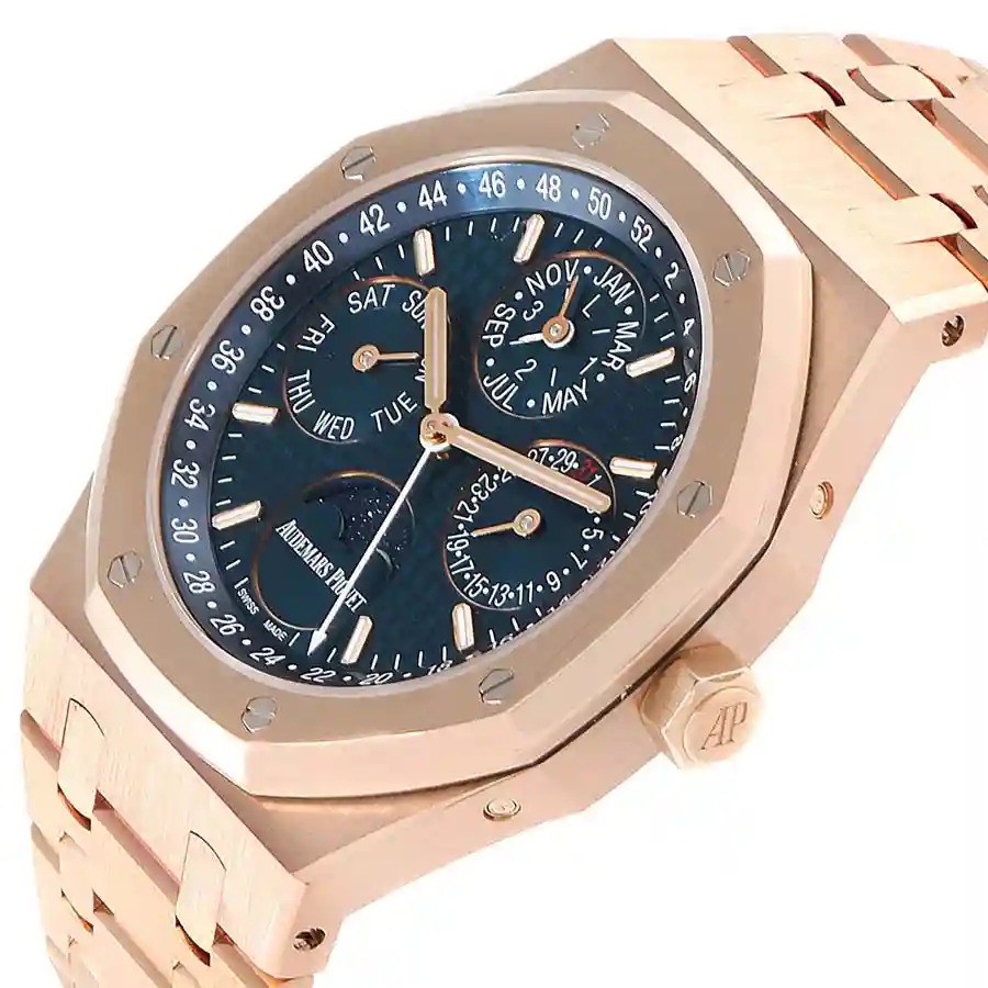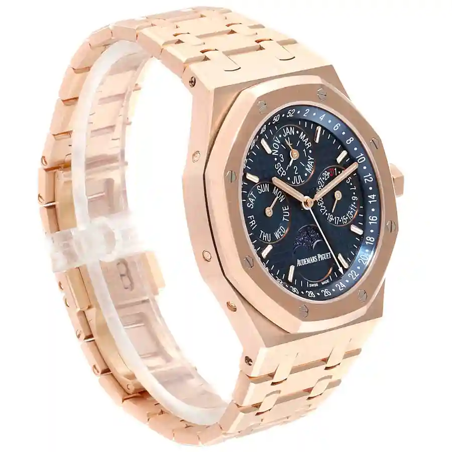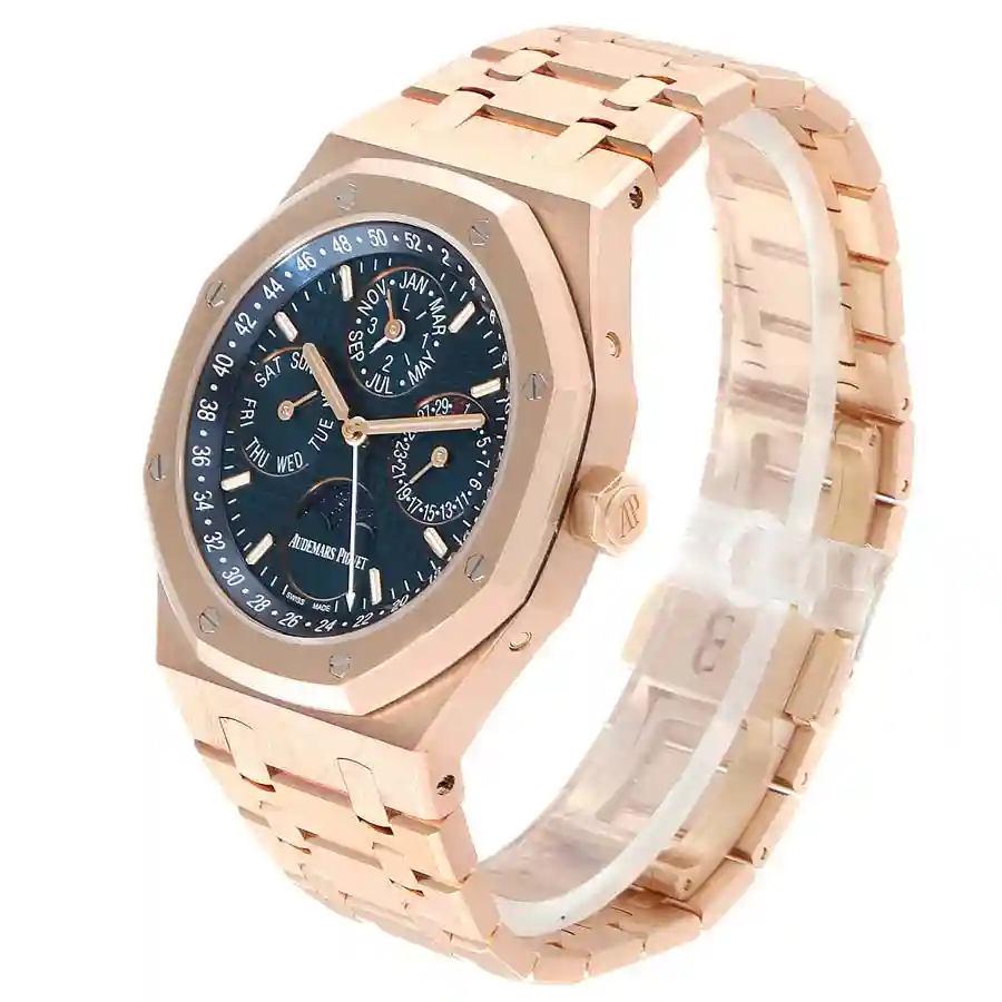 mechanism of the watchAP Rose Gold Blue Dial replica is in the limits of COSC standard(-3 / +3 seconds a day).