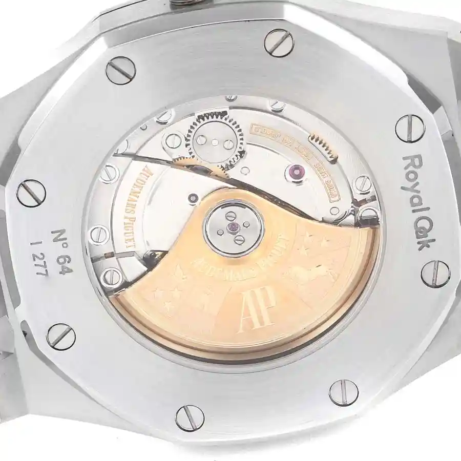 The 904L stainless steel Royal Oak bracelet in steel color has an adjustable link. It can be adjusted for all wrist sizes.