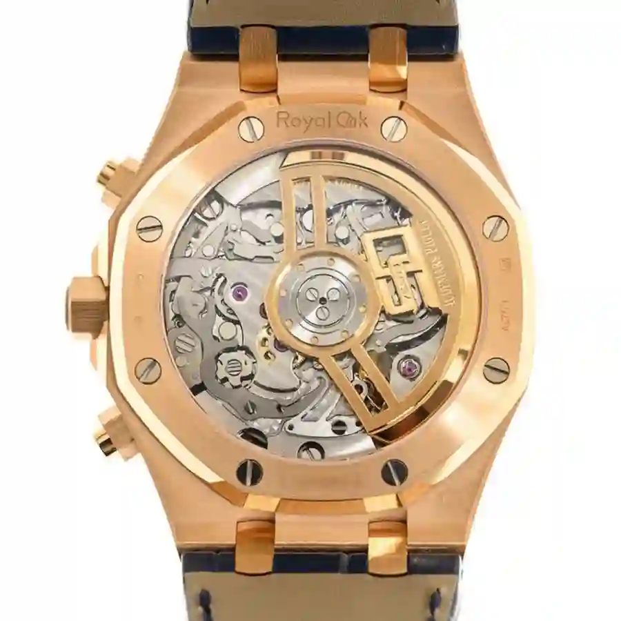 Audemars Piguet Blue Leather replica has a 904L stainless steel rose gold colored case and it also has a 904L stainless steel rose gold colored bezel. The case has a scratch-proof sapphire crystal and it has 41,00 mm size 12,38 mm thickness.