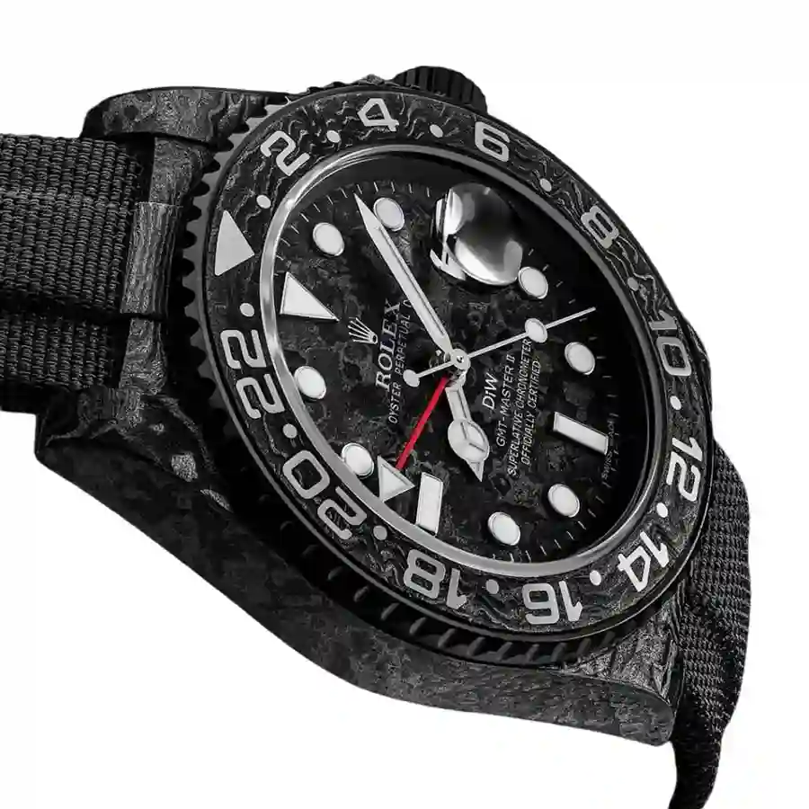 The Rolex DiW NTPT Carbon replica from GMT-Master 2 family has a visually striking design. It is one of our best replica watches. The celebrities prefer it because of its elegant design.